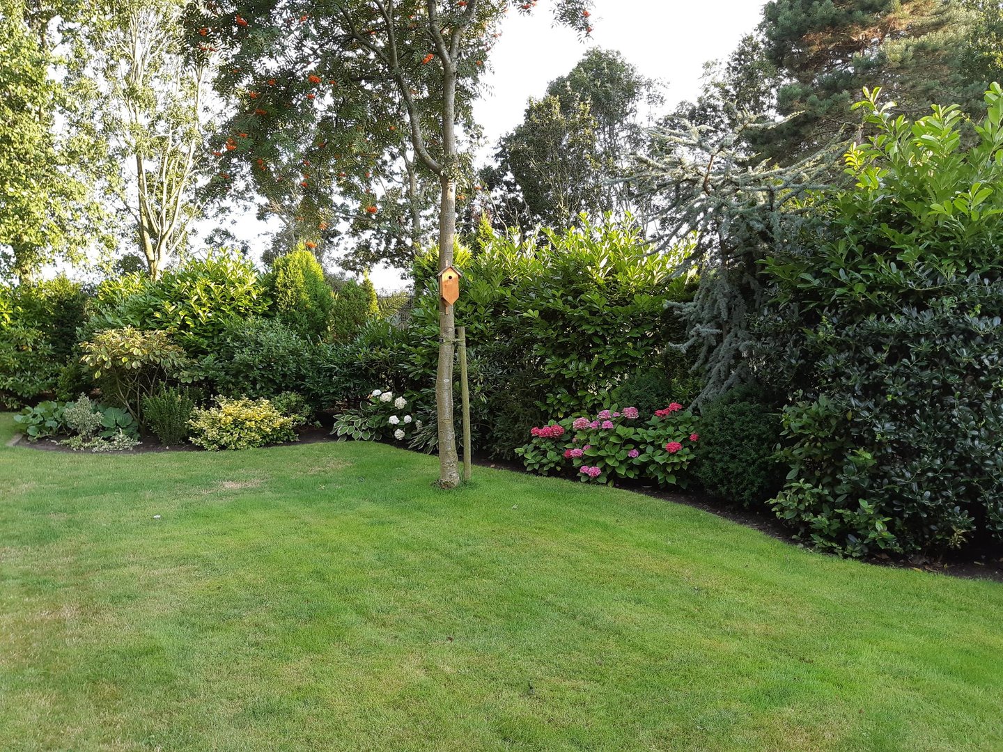 Der großzügige Garten (800 m²) ist komplett eingezäunt und lädt mit sonnigen Plätzen sowie schattigen Ecken zum Entspannen ein. Ein Grill steht in der Abstellkammer bereit. Das Gartenhaus ist für privaten Gebrauch reserviert.